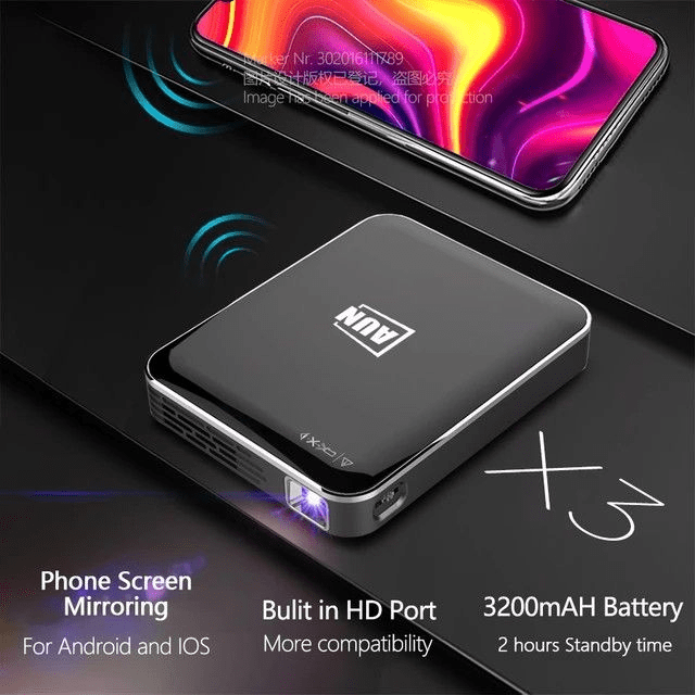 ๐AUN MINI Proiettore X3, Android/IOS Mirroring Dello Schermo Del Telefono, sistema Multimediale Video 3D, per Home Cinema