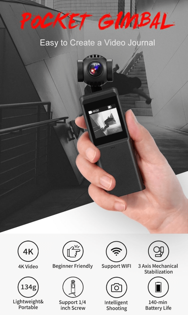 KEELEAD P6A Stabilizzatore, videocamera tascabile palmare a 3 assi, 4K 30fps e foto da 12MP, con Wi-Fi, Smart Track, batteria integrata, APP dedicata – Versione Standard, Disponibile in varie configurazioni