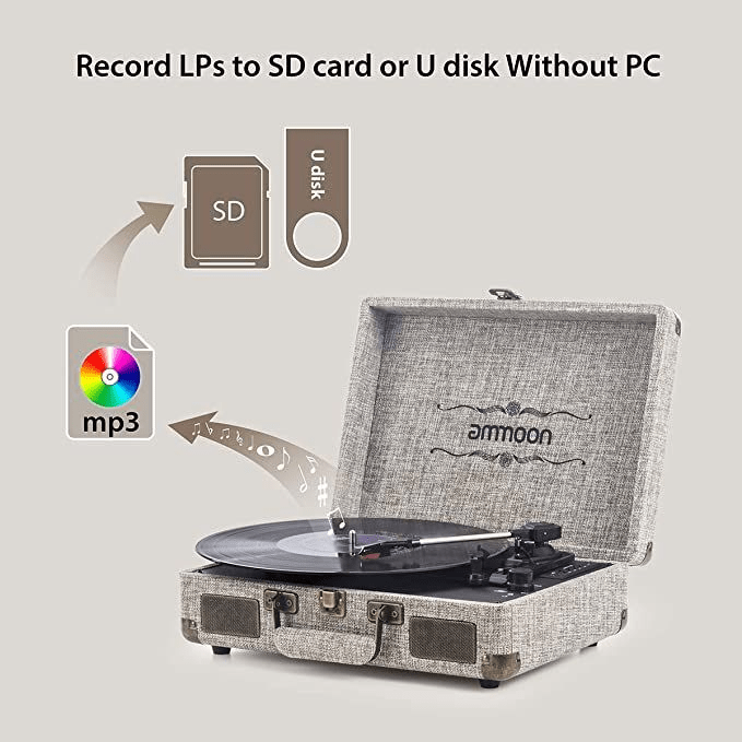 👁️🗨️🔝Giradischi Vintage, ammoon Bluetooth a 3 Velocità con 2 Altoparlanti Integrati, Presa RCA e Ingresso AUX/USB/Scheda SD, Converte il Vinile in MP3