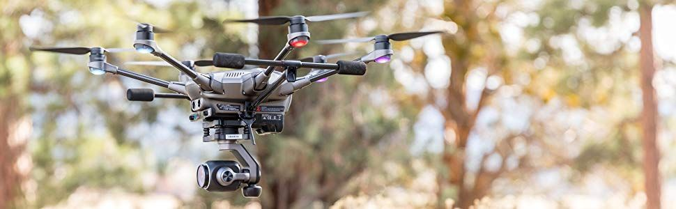 🔝Yuneec – Typhoon H Plus, Esacottero con fotocamera C23 da 20MP da 1″ 4K a 60fps, Gimbal a 3 assi rotabile a 360°, carrello retrattile, radiocomando con display da 7″ touchscreen ST16S, modalità di volo automatizzate come Follow Me, Point of Interest e Curve Cable Cam. Sonar Anticollisione, modalità a 5 rotori per compensare un guasto al motore. 2x batterie, caricabatterie, tracolla e protezione solare per ST16S, scheda SD e altri accessori.