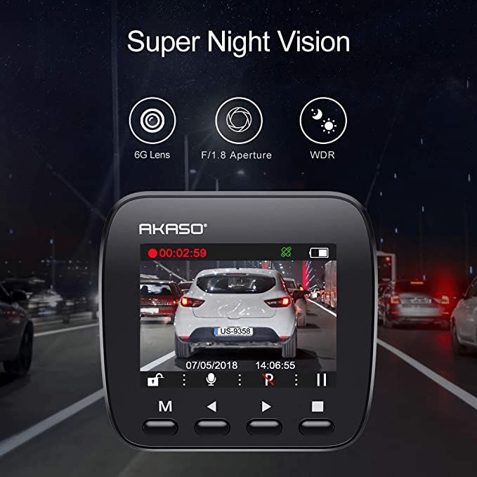 👁️🗨️ AKASO V1 WiFi Dash Cam con GPS, Full HD per auto con scheda di memoria da 16 GB inclusa, Monitor di parcheggio, G-Sensor con registrazione, visione notturna e grandangolare