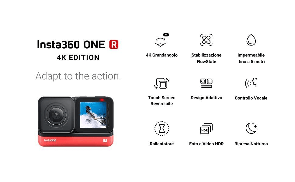 🔝 Insta360 ONE R (Versione) Twin Edition Telecamera stabilizzata sportiva 5.7K, 360° panoramica HDR, IPX8 impermeabile con GPS, diverse funzioni Hyperlaps, Point to track, controllo vocale, Slow Motion.. Disponibile anche la versione Edition