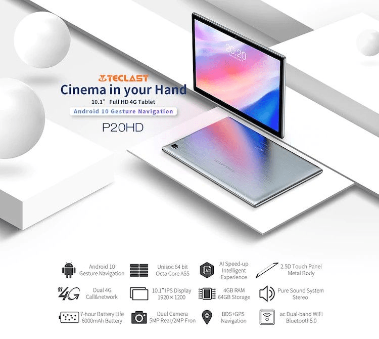 ๐๏ธโ๐จ๏ธ๐TECLAST P20HD schermo IPS da 10,1-pollici, 4G Tablet, Android 10, Otto-core, 4GB RAM 64GB, Bluetooth 5.0, EU ..