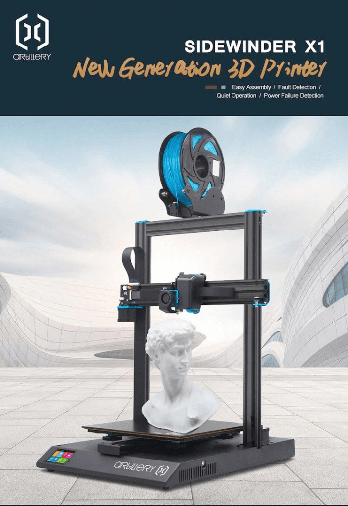 ποΈβπ¨οΈπ ARTILLERY stampante 3D Sidewinder-X1 di grandi dimensioni 303040, funzione di recupero in caso di interruzione, display touch TFT, doppio asse Z. – Nero Italia 220 V. Memory Card, USB..