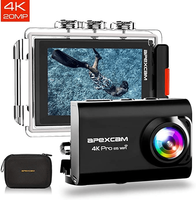 🔝Apexcam Action Cam Pro【Aggiornato】4K 20MP Fotocamera EIS WIFI, display da 2 Pollici Ultra HD Impermeabile 40M Sott’acqua con Mic. Esterno 2.4G Telecomando 170°Grandangolare due 1200mAh Batterie e Kit Accessori